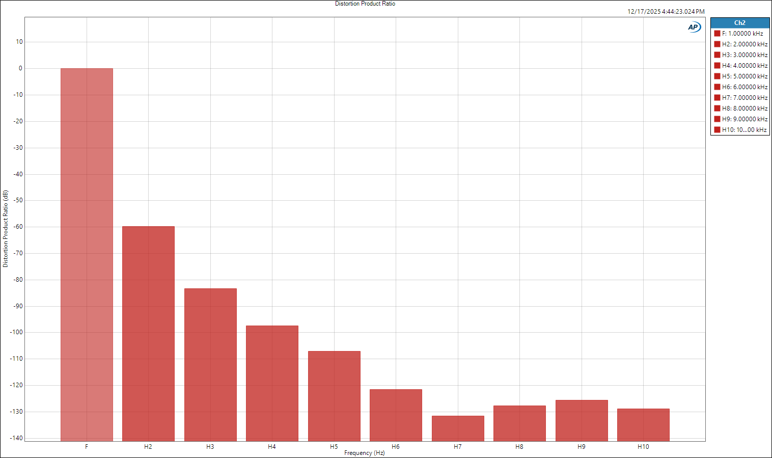 Distortion products (sort of another way of looking at the FFT). Anything past H6 is in the noise.