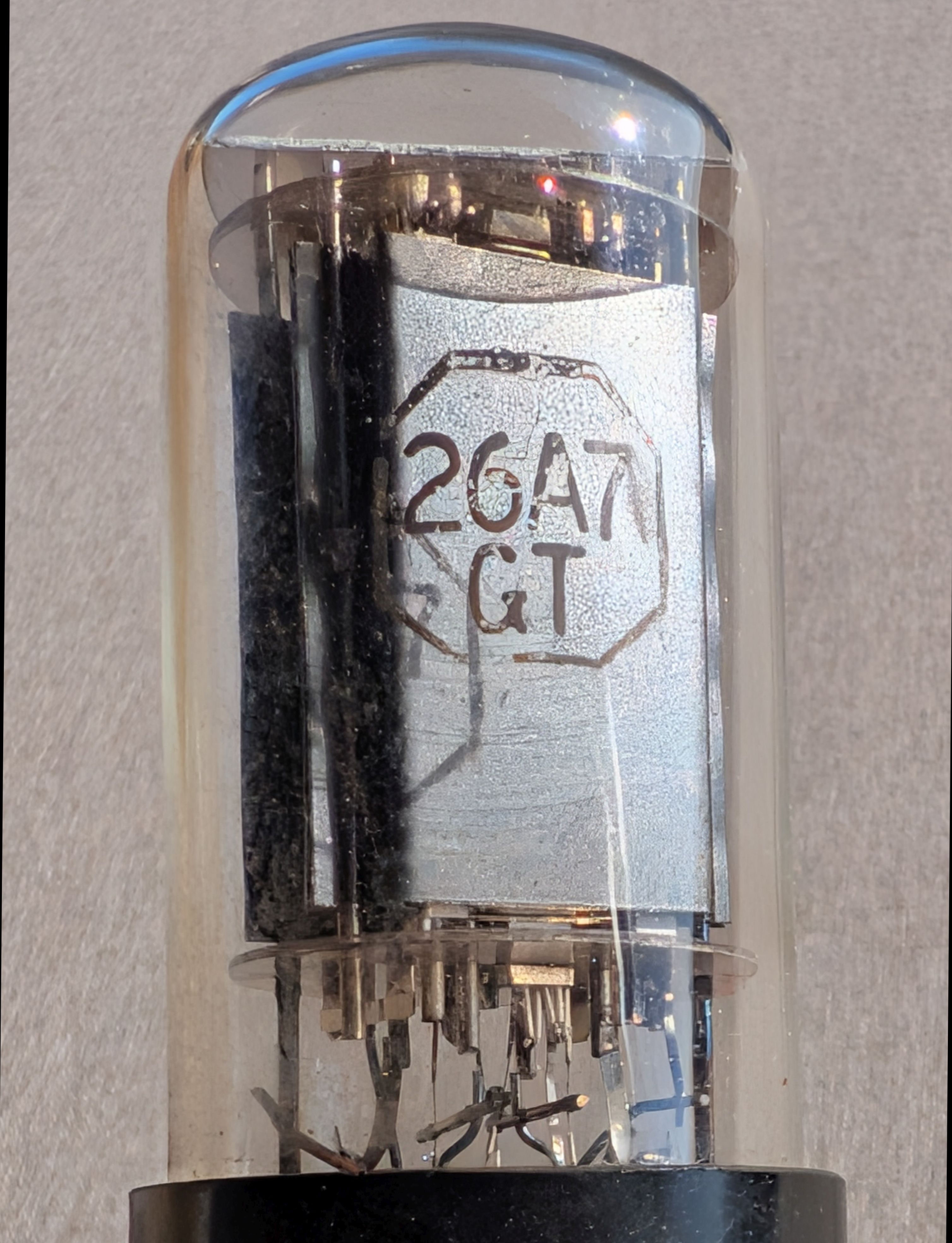 The 26A7 is an octal GT-shape tube. It has a 26V heater that draws 600mA - that's over 15 watts of heater power! That is how they can get enough emission to do something useful at 26V B+.
