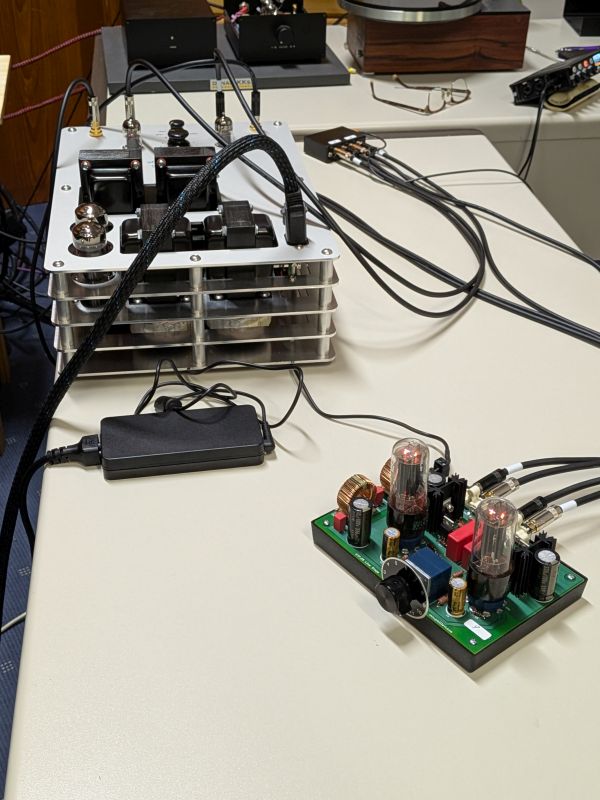 What I built measures well, and most agree that it sounds good. And of course, being me, it is NOT conventional. Here are the two shootout finalists: mine (the tiny thing on the right) vs. a beautiful build by Eddie Pletka: