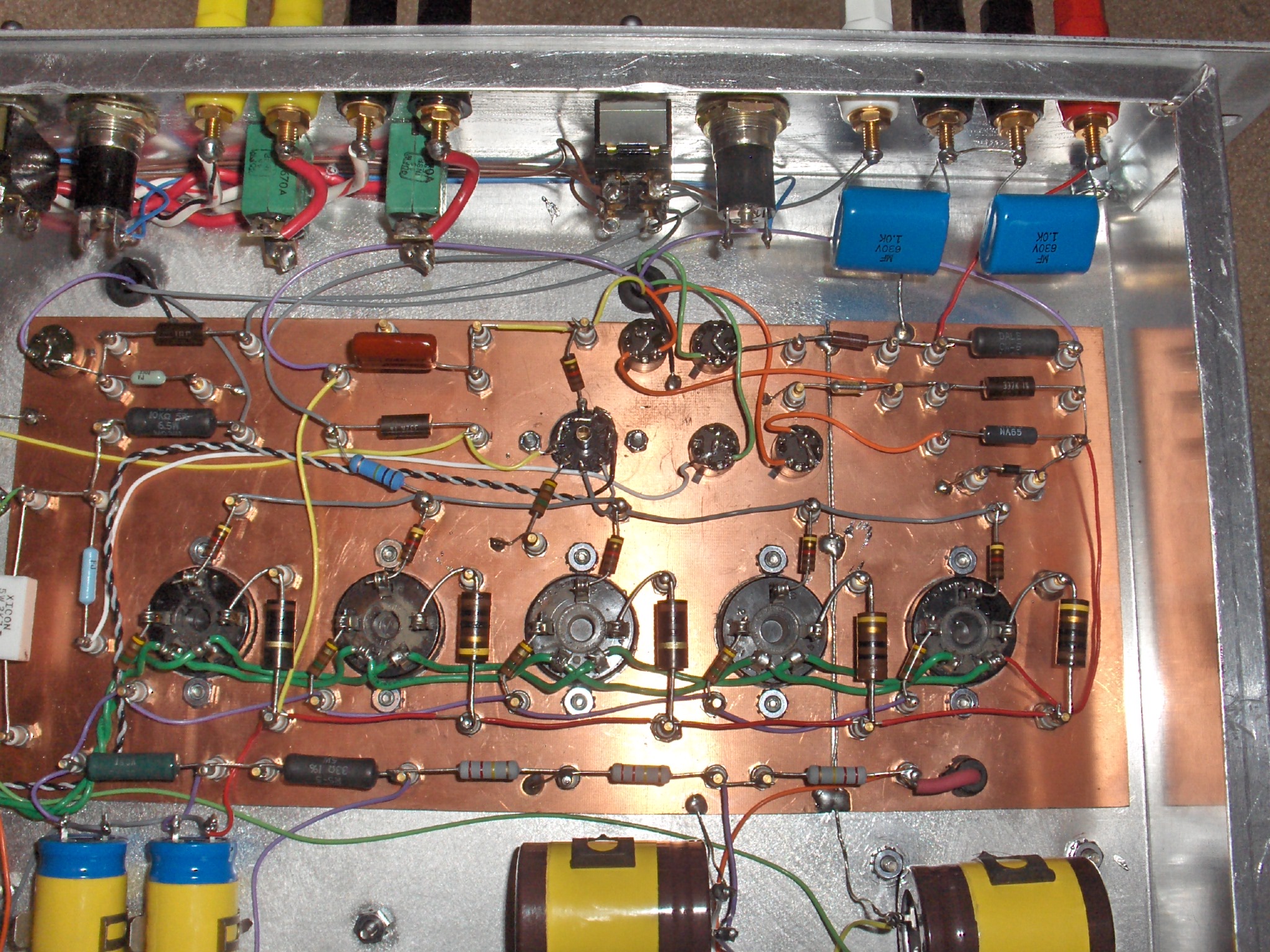 Since I'm cheap, this was basically a junk-box build. OK, I do have a well-endowed "junk box" (more of a room, actually). I used tubes and iron that I had available. I bought a few odds and ends, like some resistors, relays, the chassis, and the panel meters.