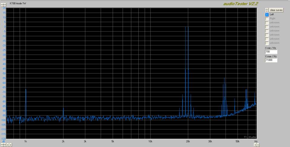 7kHz + 60Hz 1:4 IMD spectrum @ 1 watt - highest peaks are -63dB from the 7kHz tone: